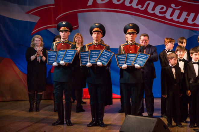 Дипломы участникам гала-концерта вручили: Герои России – председатель Президиума «ОФИЦЕРОВ РОССИИ» генерал-майор Сергей Липовой, председатель Совета по патриотическому воспитанию полковник полиции Александр Головашкин, председатель Совета отечественных производителей в сфере обороны и безопасности «ОФИЦЕРОВ РОССИИ» Анатолий Кнышов, Герой России гвардии полковник запаса Вячеслав Сивко, председатель Международного союза бывших малолетних узников фашизма Николай Махутов, а также члены Президиума «ОФИЦЕРОВ РОССИИ» – генерал-полковники Иван Шилов и Валерий Баранов, генерал-лейтенант внутренней службы Игорь Астапкин, действительный государственный советник юстиции 2 класса Михаил Контарев, генерал-лейтенант Юрий Тужилкин, генерал-майор внутренней службы Елена Зарембинская, генерал-майор полиции Владимир Михалевич, генерал-майор Михаил Макарук, полковники Борис Николаев и Николай Соловьев и другие.