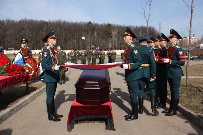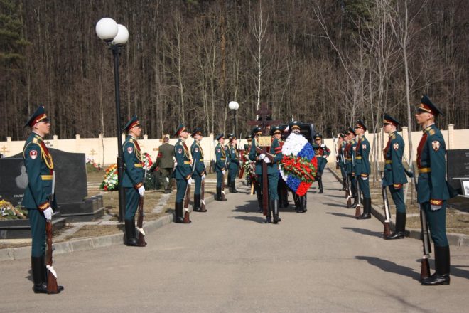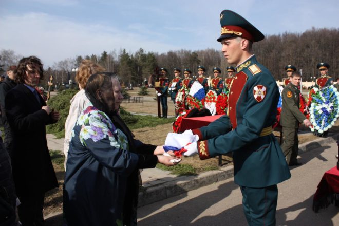 10 апреля ветерана Великой Отечественной войны похоронили на Троекуровском кладбище со всеми воинскими почестями. В траурной церемонии приняли участие: заместитель председателя Совета по патриотическому воспитанию «ОФИЦЕРОВ РОССИИ» Виктор Золотухин; член Совета мужества и отваги «ОФИЦЕРОВ РОССИИ», Герой Советского Союза Владимир Горовой; директор Фонда «Звезда», член Президиума регионального отделения «ОФИЦЕРОВ РОССИИ» в Москве Мария Сорокина.