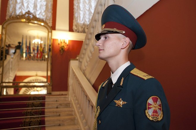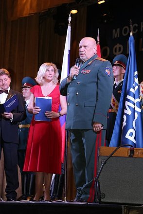 Мероприятие открыла знаменная группа внутренних войск МВД, которая внесла в зал государственный флаг России, флаг Москвы, а вслед за этим зазвучал гимн РФ.