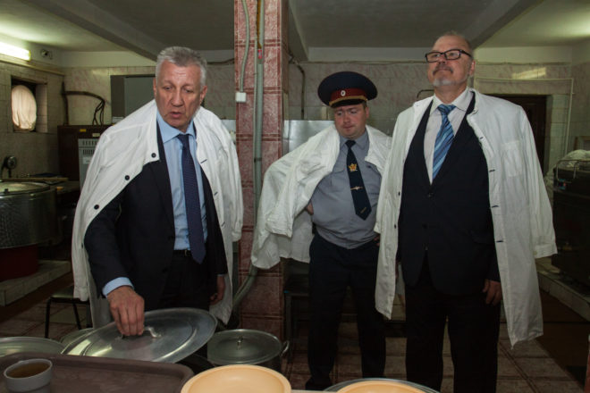 Члены делегации встретились с заключенными. Михаил Контарев и Владимир Михалевич провели личный прием, обращая особое внимание на условия содержания, медицинское обслуживание, качество питания и на факты несоблюдения прав и законных интересов осужденных со стороны администрации.