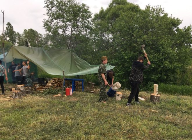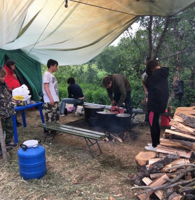 Ребята жили в палаточном лагере, сами заготавливали дрова и готовили пищу на костре, несли дежурство по охране «временного пункта дислокации» в ночное время и даже отражали «нападения условного противника».