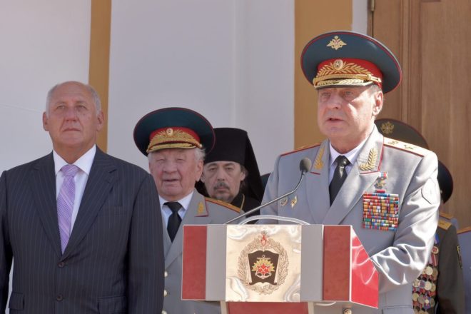 По поручению министра обороны РФ и руководства Вооруженных сил РФ Дмитрий Булгаков поздравил выпускников с успешным окончанием учебы, пожелал им благополучия и успехов в воинской службе и выразил убежденность, что молодые офицеры добьются авторитета в войсках, опираясь на полученные знания, профессиональное отношение к службе.
