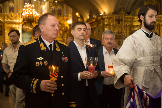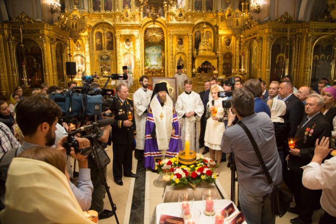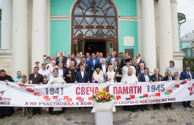 Памятные мероприятия начались в Елоховском Богоявленском соборе, где прошло поминовение павших воинов и мирных жителей, погибших в годы Великой Отечественной войны, и зажжение главной свечи памяти, свечей памяти народов СССР, городов-героев и городов воинской славы.