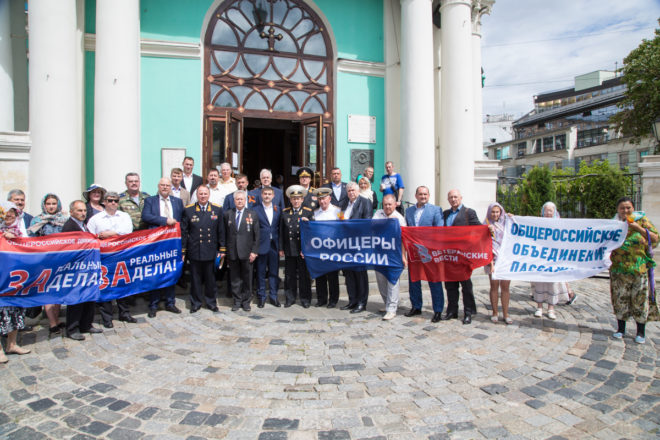 В акции приняли участие председатель Президиума «ОФИЦЕРОВ РОССИИ», Герой России Сергей Липовой, члены Президиума – председатель Общероссийского движения «ЗА РЕАЛЬНЫЕ ДЕЛА!» Антон Цветков, Герой Советского Союза Владимир Горовой, Михаил Контарев, Виктор Золотухин, Константин Кутуев, Николай Соловьев, активисты Московского регионального отделения.