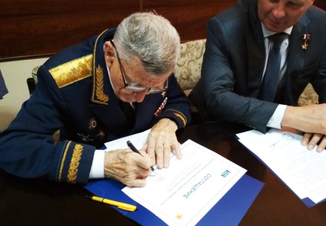 Подписи под документом поставили председатель Президиума «ОФИЦЕРОВ РОССИИ», Герой России генерал-майор Сергей Липовой и председатель Президиума Межгосударственного союза городов-героев, участник Великой Отечественной и Корейской войн, Герой Советского Союза генерал-майор Сергей Крамаренко.