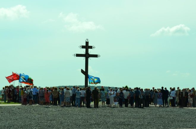 Торжества начались в Фатежском районе, где прошло богослужение и возложение венков и цветов к памятнику «Ангел мира» на мемориальном комплексе «Поклонная высота 269».