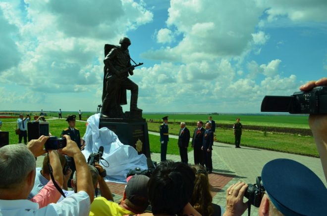 Затем на мемориале «Тепловские высоты. Высота 274» в Фатежском районе был торжественно открыт памятник солдату-освободителю.