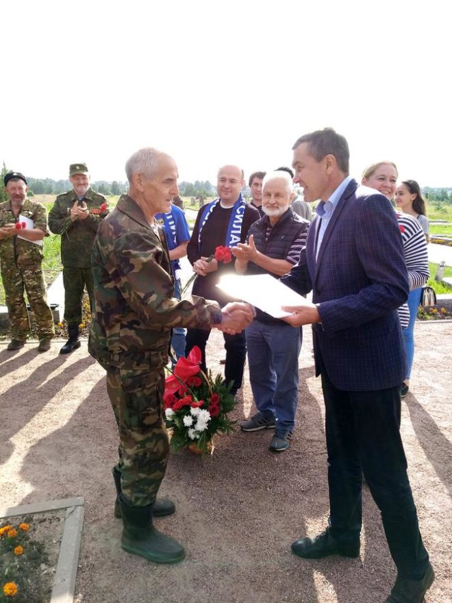 После установления мемориальной плиты и возложения цветов, Постоянный представитель Республики Татарстан в городе Санкт-Петербурге и Ленинградской области Ренат Валиуллин наградил руководителей и участников экспедиции «Вахта памяти – 2018» благодарственными письмами за патриотическое воспитание подрастающего поколения, а заместитель председателя Общественного совета УФССП по Санкт-Петербургу Валерий Сабанов поблагодарил школьников за их труд и пожелал успехов в деле сохранения памяти воинов-татарстанцев и всех защитников Родины.