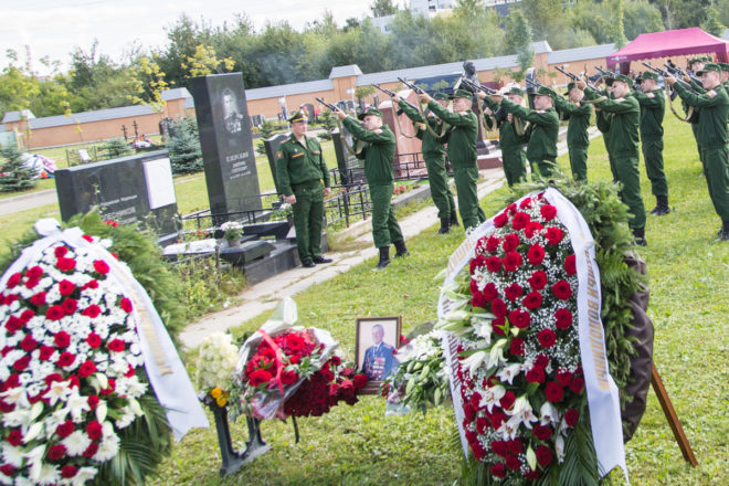 Церемония прощания с Героем прошла на Троекуровском кладбище. Отдать дань памяти полковнику Ведерникову собрались родные, друзья, ветераны и военнослужащие Вооруженных сил РФ, представители общественных организаций.