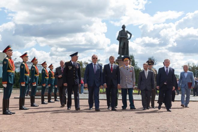 Почетные гости торжества возложили цветы к монументу генералиссимуса А.В. Суворова, памятнику воинам-интернационалистам и военным морякам-подводникам. Для участников праздника были подготовлены праздничный концерт и полевая кухня с «суворовской» кашей».
