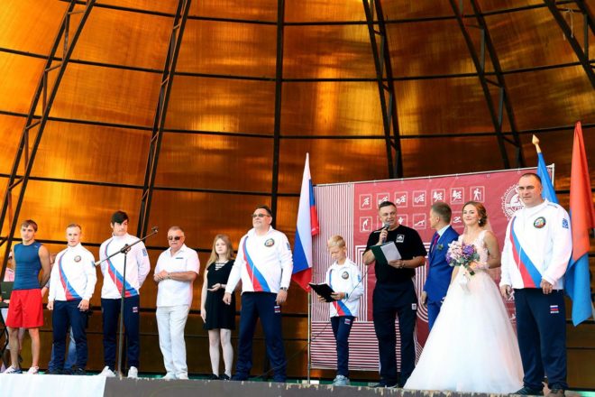 Перед участниками мероприятия выступили и провели разминку известные спортсмены, уроженцы Моршанска – чемпионка мира по пожарно-спасательному спорту Анна Окорокова, у которой в этот день была свадьба; бронзовый призер чемпионата мира по шахматам среди лиц с поражением опорно-двигательного аппарата Виктория Красивская; победитель и призер российских и международных чемпионатов по боксу Евгений Аверин; победители объединенного чемпионата мира по смешанным единоборствам Александр Медведев и Артем Иванов, воспитанники Моршанского казачьего военно-патриотического спортивно-технического клуба им. Героя Советского Союза Н.И. Бореева.