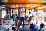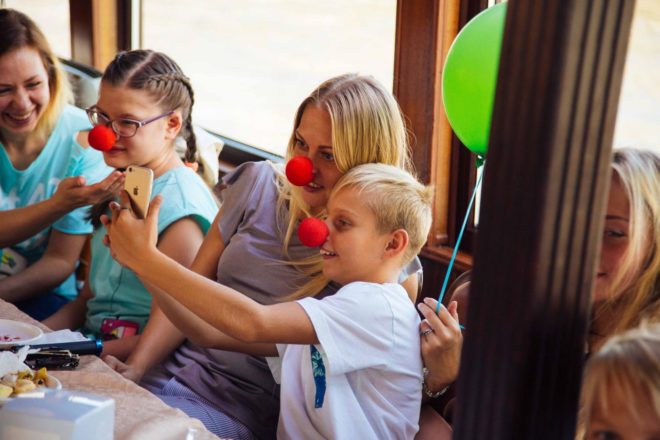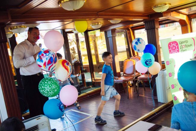 Программа праздника была разнообразной. На речной прогулке ребят ждали интересная обзорная экскурсия по Москве-реке, ростовые куклы и питомцы живого уголка, увлекательная викторина, посвященная Дню российского кино, дискотека, аквагрим, сладкий стол, а также много незабываемых эмоций и ярких впечатлений.