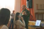 Встречу открыл заслуженный работник МВД, полковник в отставке Михаил Полухин, который рассказал о трагедии, произошедшей 14 лет назад в Беслане, когда террористы захватили школу, в заложниках оказались 1128 человек, преимущественно дети. В результате теракта погибли 333 человека, 783 человека были ранены. Это страшное событие оставило огромный след в истории страны.