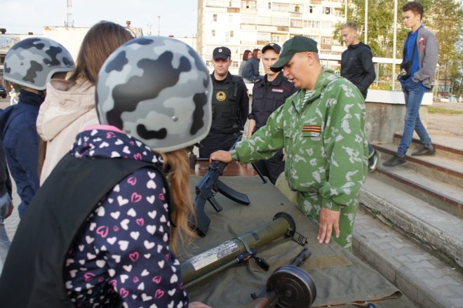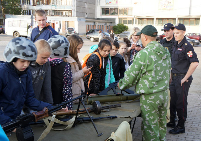 Со сцены прозвучали песни о добре, мире и согласии. Дети представили свои рисунки на тему мира. Все желающие могли осмотреть выставку боевой техники и оружия.