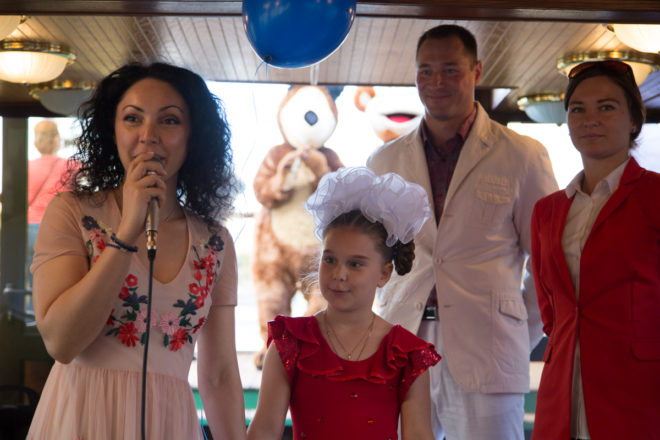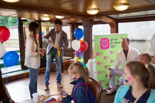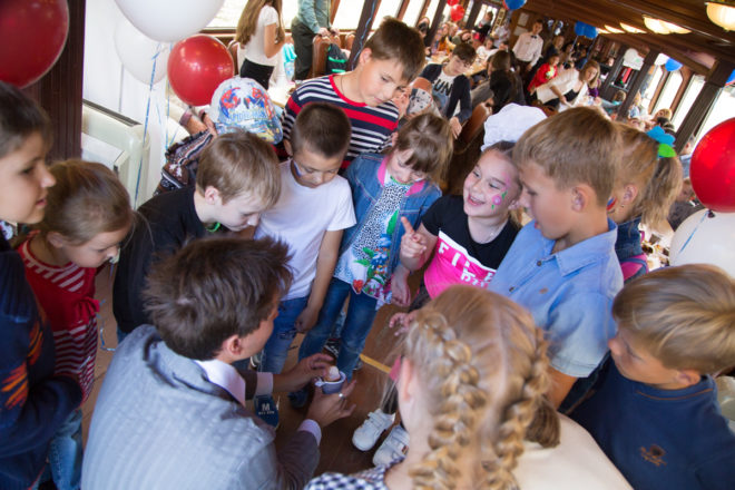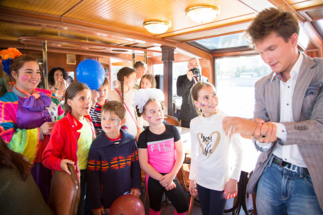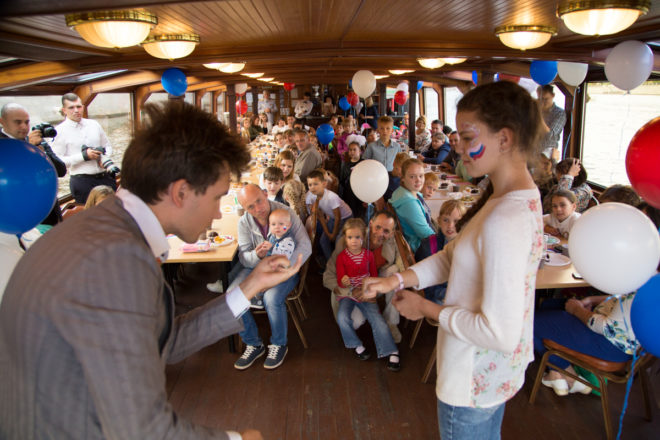 Программа праздника была разнообразной. На речной прогулке ребят ждали интересная обзорная экскурсия по Москве-реке, занимательная викторина на знание истории России и государственного флага, ростовые куклы, питомцы живого уголка, дискотека, аквагрим, фокусы, мастер-классы, сладкий стол, а также много незабываемых эмоций и ярких впечатлений.