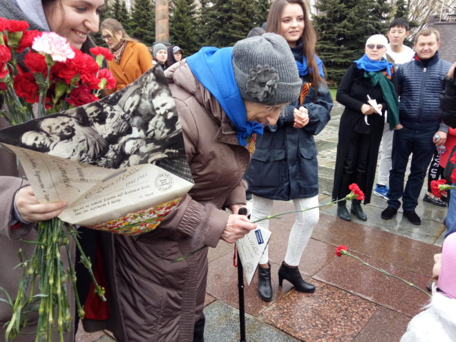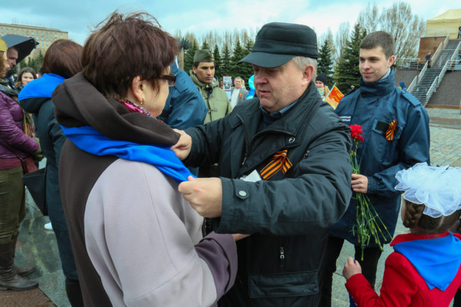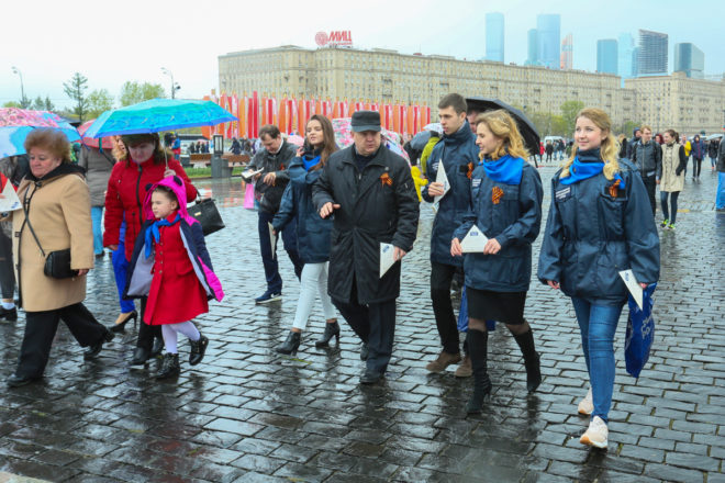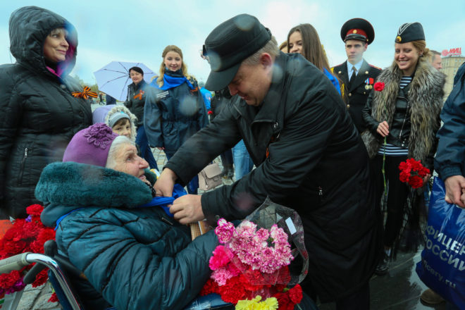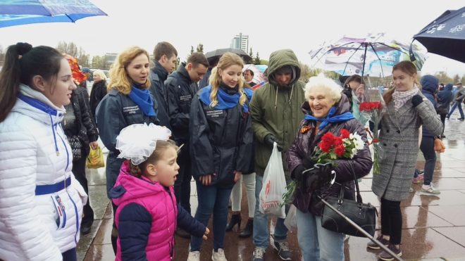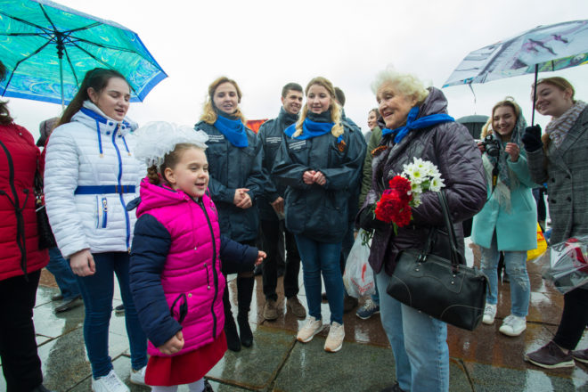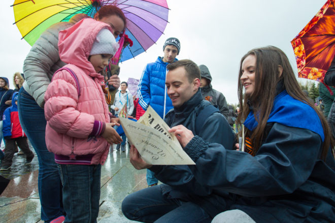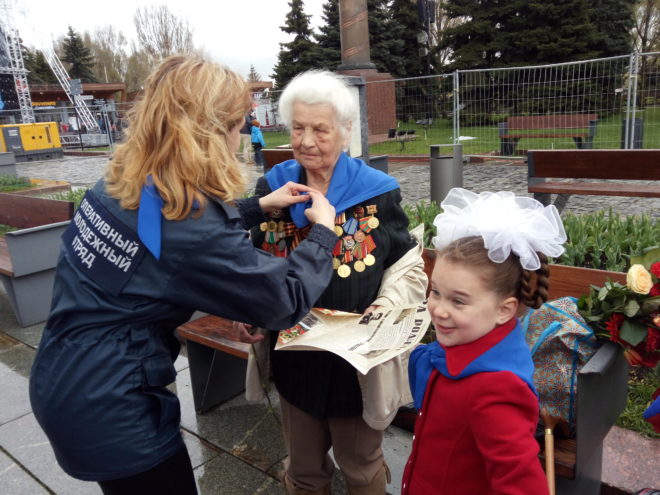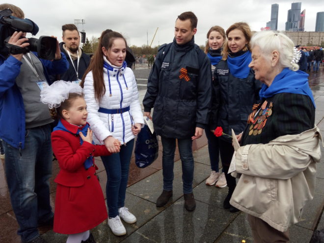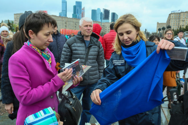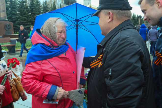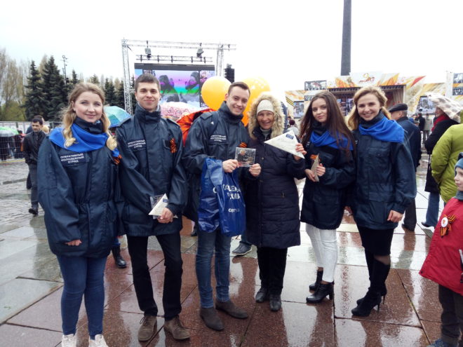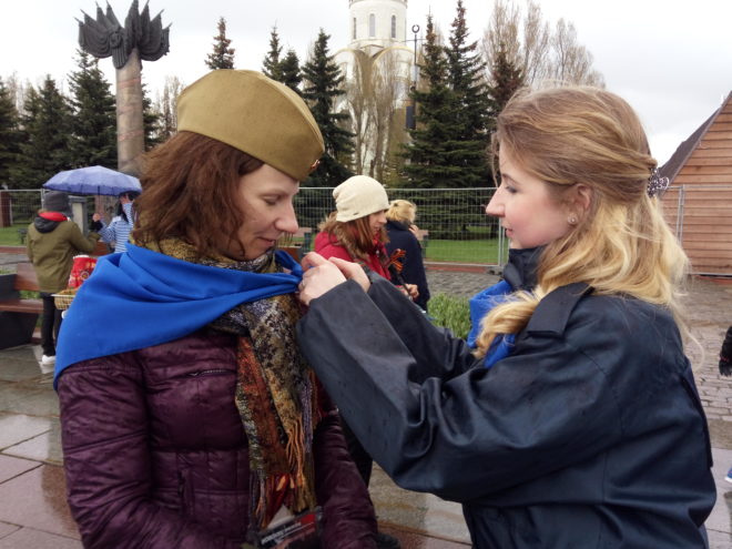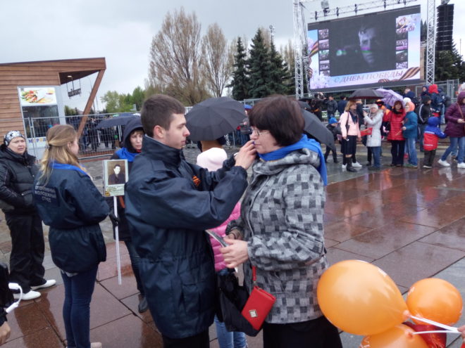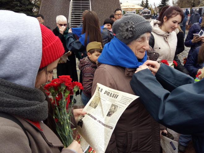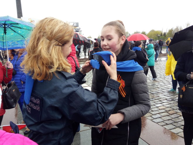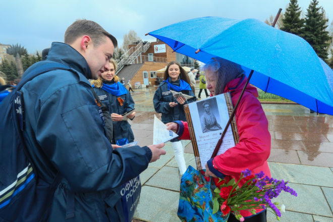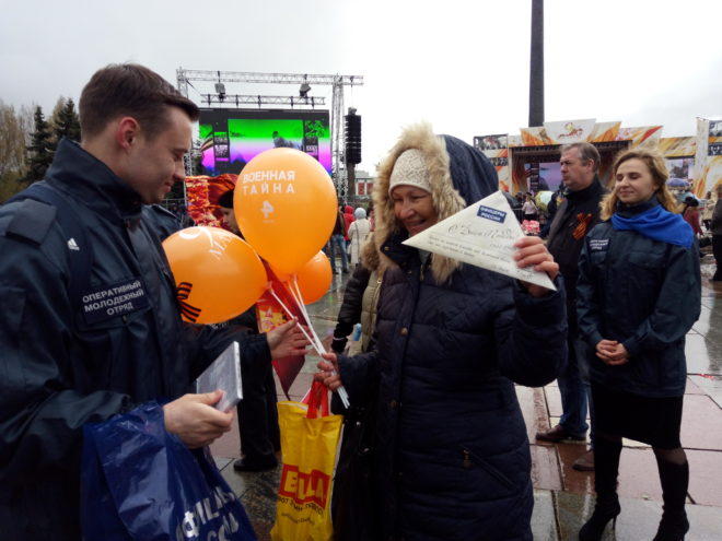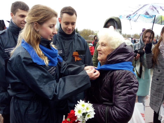 9 мая на Поклонной горе в столице активисты регионального отделения «ОФИЦЕРЫ РОССИИ» в Москве и члены Оперативного молодежного отряда провели акцию «Синий платочек». Стилизованные письма-треугольники с синим платочком внутри конверта, в первую очередь, были вручены женщинам – ветеранам Великой Отечественной войны, труженикам тыла, детям войны, а также девушкам, которые пришли в этот день на это святое место столицы отдать дань памяти тем, кто защитил страну от фашизма.
