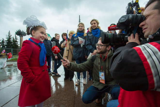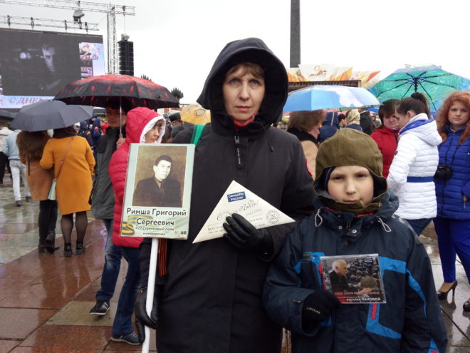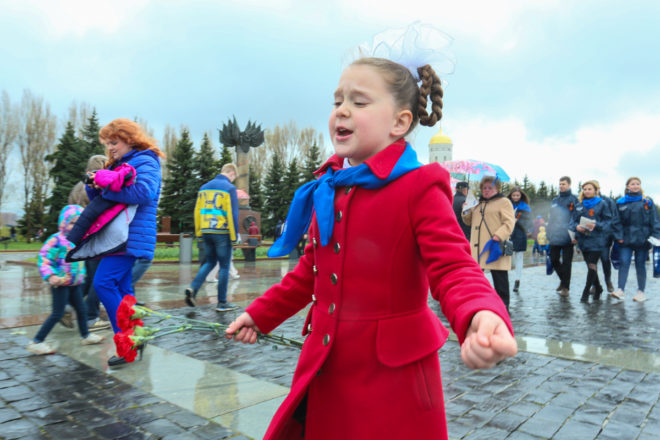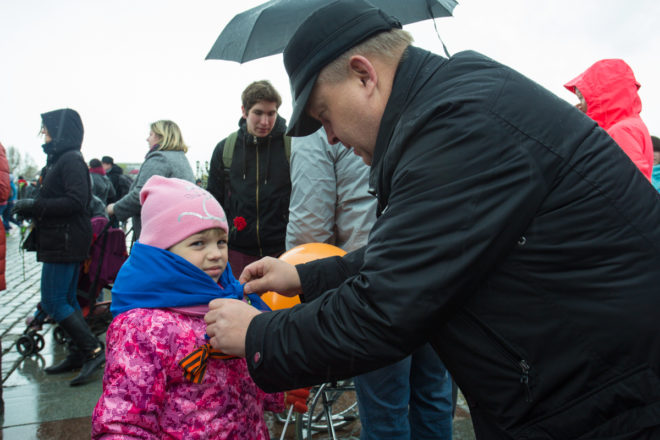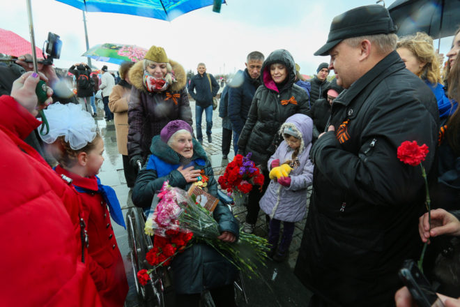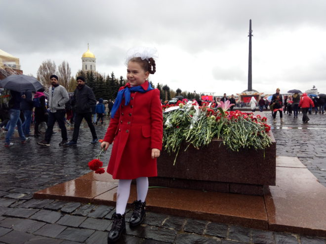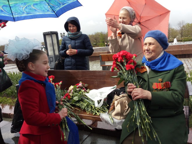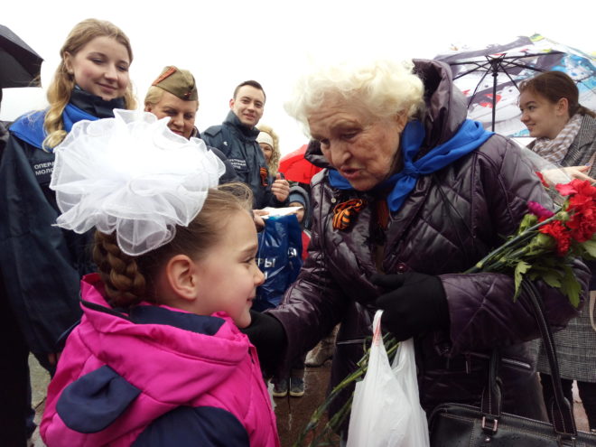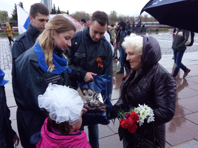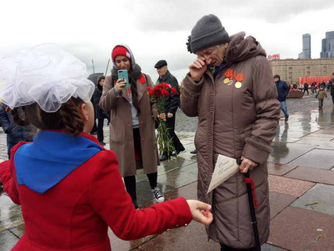 В центре внимания была юная исполнительница песни «Синий платочек», финалистка 9-го Московского фестиваля детской патриотической песни, прошедшего в Общественной палате РФ, 7-летняя Маргарита Сварковская, которая, несмотря на холодную дождливую погоду, более 10 раз исполнила эту песню для всех тех, кто пришел на Поклонную гору. Каждое ее выступление собирало вокруг много жителей и гостей столицы и было встречено бурными аплодисментами, а женщины военных лет не могли сдержать своих слез.
