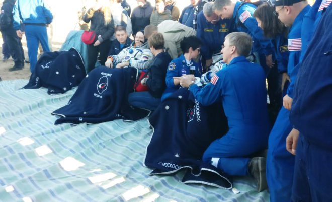 4 октября в казахстанской степи встретили международный экипаж 56-й экспедиции МКС. «Есть посадка» – долгожданные слова, которыми в ЦУПе прокомментировали успех миссии.