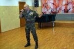 В рамках концертного марафона «Московский рубеж» активист местного отделения «ОФИЦЕРОВ РОССИИ» в г. Коломне Московской области, автор-исполнитель, гвардии майор запаса Константин Карачевцев выступил перед учащимися Детской хоровой школы имени А.В. Свешникова.