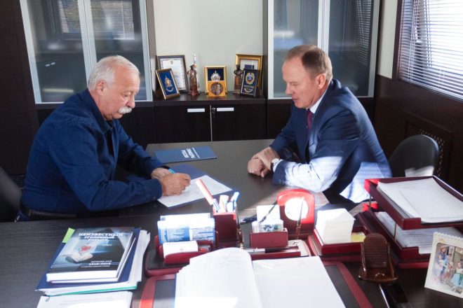 Председатель Президиума «ОФИЦЕРОВ РОССИИ», Герой России Сергей Липовой провел рабочую встречу с народным артистом России, известным телеведущим и продюсером Леонидом Якубовичем.