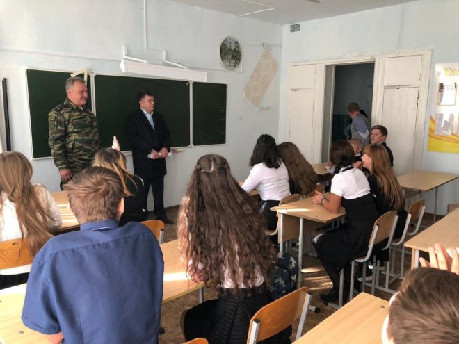 Председатель президиума регионального отделения «ОФИЦЕРОВ РОССИИ» в Челябинской области Виктор Кузенков и заместитель руководителя исполкома ЧРО движения «ЗА РЕАЛЬНЫЕ ДЕЛА!» Виктор Чернышев провели встречу с учениками средней общеобразовательной школы поселка Таянды, расположенного в Еманжелинском районе.