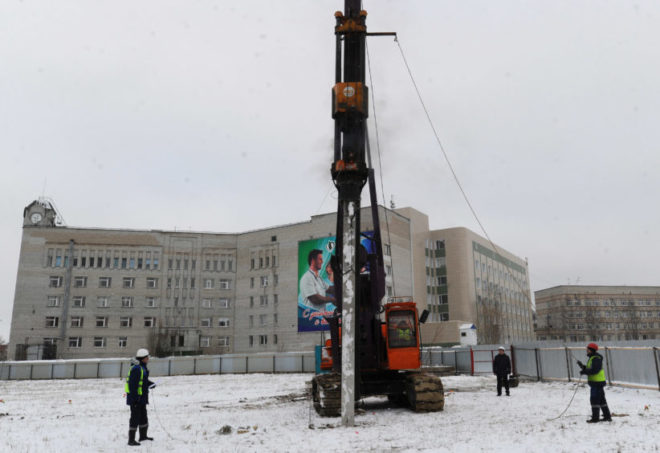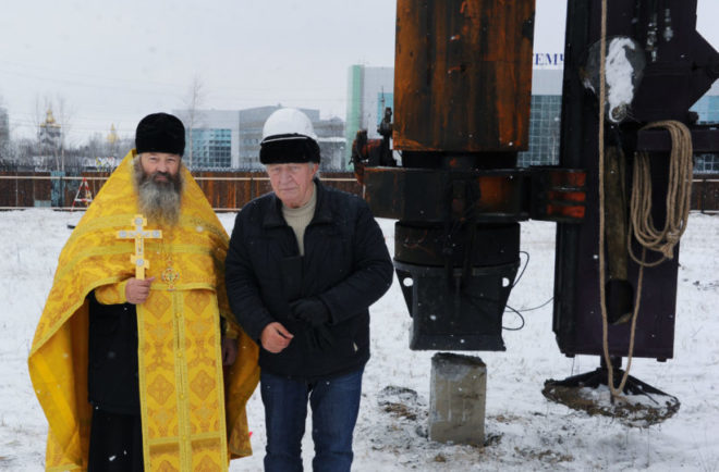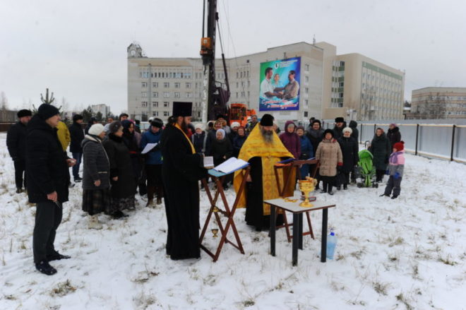 В Нефтеюганске на территории окружной клинической больницы была освящена и забита первая свая для строительства православного храма Святого Луки (Войно-Ясенецкого).