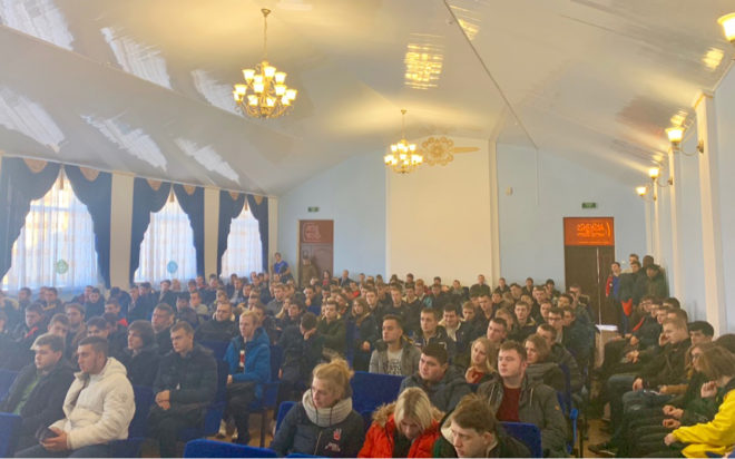 Члены организации провели встречу со студентами, на которой были затронуты такие понятия как патриотизм, патриот, чувство долга, Родина, гражданская ответственность.