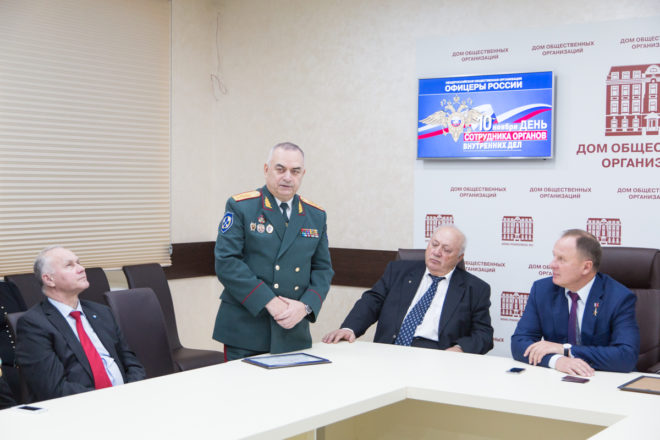 Открывая мероприятие, председатель Президиума «ОФИЦЕРОВ РОССИИ», Герой России, генерал-майор Сергей Липовой поздравил ветеранов органов внутренних дел с прошедшим на днях профессиональным праздником.