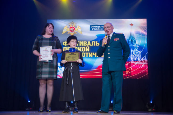 В номинации «Самый юный участник фестиваля» лауретом стал 10-летний Денис Порушенков (Приволжский округ ВНГ РФ).