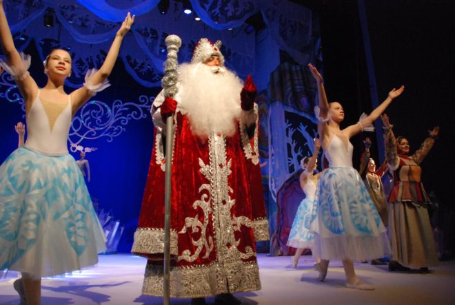 Мероприятие началось с традиционного хоровода вокруг новогодней елки с песнями и танцами. Затем юных астраханцев пригласили в зрительный зал, где они посмотрели концерт с участием творческих коллективов областного центра и спектакль «Серебряное копытце».