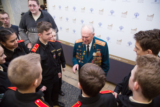 В Музее Победы на Поклонной горе состоялся бесплатный показ фильма «Т-34», приуроченный к 75-летию со дня принятия на вооружение легендарного танка. Он пополнил моторизированные ряды Красной армии 23 января 1944 года. На показ фильма пришли курсанты военных училищ, кадеты, ветераны, представители общественных организаций.