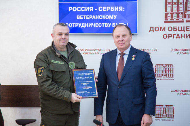 Сергей Липовой выразил благодарность сербским гостям за активную работу по укреплению дружбы и сотрудничества между ветеранами России и Сербии. «Наши народы связывают общие славянские корни, вера и история. Русские и сербы очень близки и нам сегодня нужно эту связь скреплять, в том числе реализацией совместных проектов», – отметил Липовой.