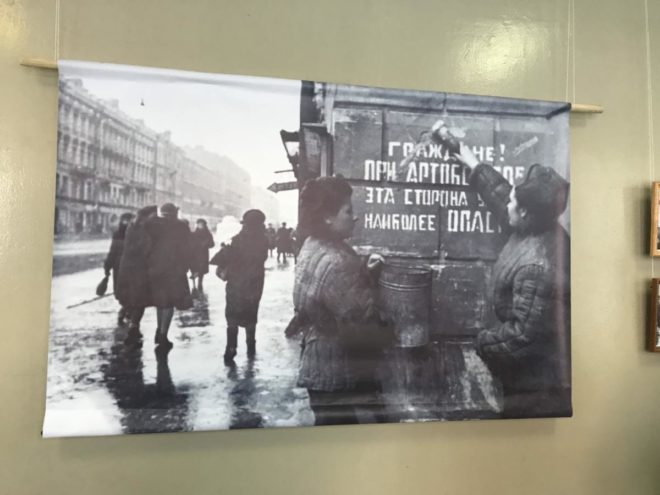 В экспозиции представлены картины, выполненные студентами училища, и документальные фотографии, рассказывающие об осажденном городе в годы Великой Отечественной войны.