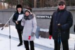 Участники митинга зажгли свечи и почтили минутой молчания память блокадников и защитников города-героя, а также возложили цветы к мемориальной стеле «Ленинград».
