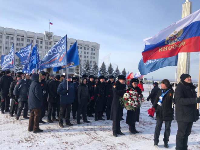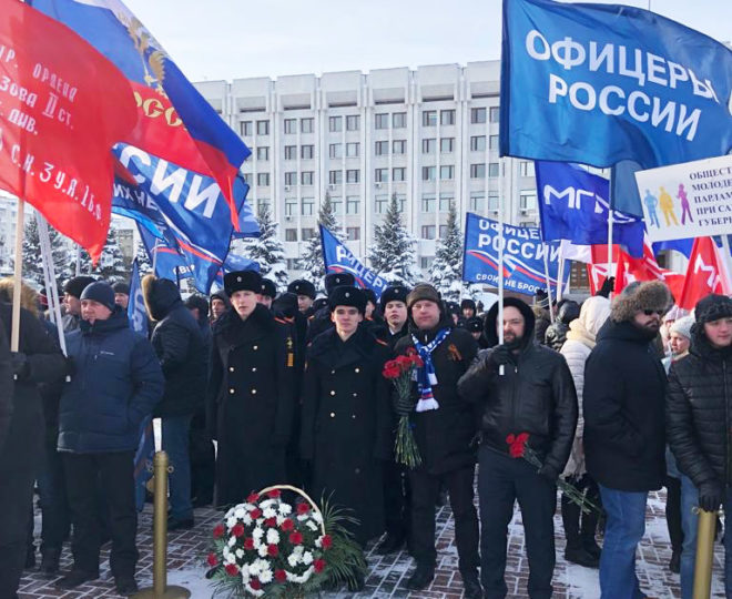 27 января активисты регионального отделения «ОФИЦЕРОВ РОССИИ» в Самарской области приняли участие в торжественной церемонии возложения цветов к Вечному огню и горельефу «Скорбящей Матери-Родине» в честь 75-летия полного освобождения Ленинграда от фашистской блокады, которая состоялась на площади Славы в Самаре.