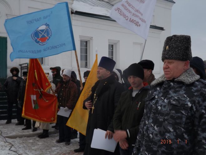 С приветственным словом к участникам митинга обратился член президиума регионального отделения «ОФИЦЕРОВ РОССИИ», настоятель Частоостровского Свято-Троицкого храма иерей Андрей Кручинкин.