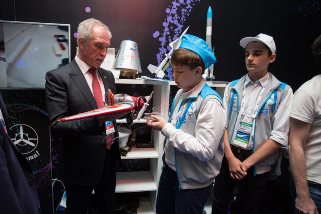 В рамках Международного авиационно-космического салона МАКС-2017 в шестой раз была представлена масштабная экспозиция Международного фестиваля детского и молодежного научно-технического творчества «От винта!», почетным президентом которого является президент России Владимир Путин.