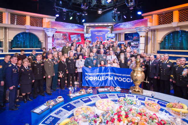 В студии присутствовали члены Президиума и Советов «ОФИЦЕРОВ РОССИИ», активисты региональных отделений организации, военнослужащие, сотрудники силовых ведомств, кадеты.