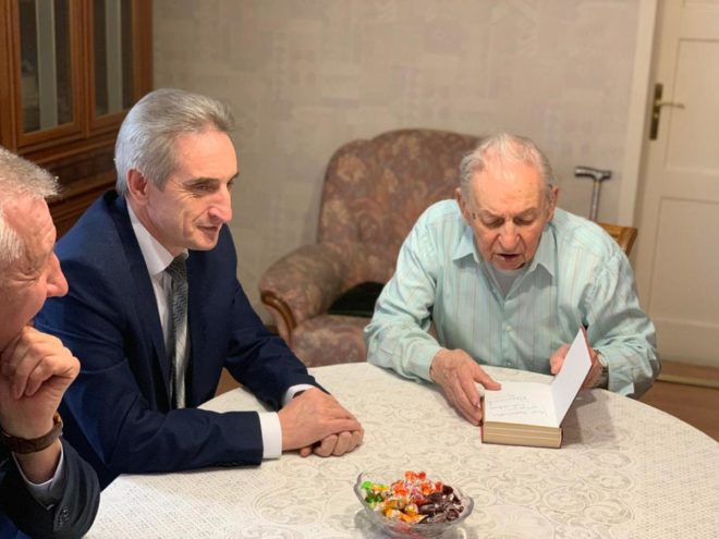 Члены Президиума «ОФИЦЕРОВ РОССИИ» Владимир Михалевич и Сергей Ермоленко навестили участника Великой Отечественной войны, Героя Советского Союза, генерал-полковника авиации в отставке Василия Решетникова и поздравили с наступающим Днем Победы.
