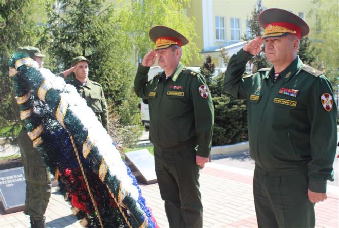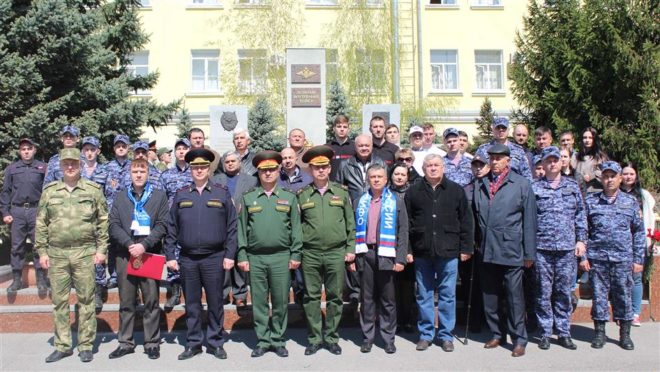 Участники акции – военнослужащие и сотрудники ведомства, ветераны войск правопорядка, активисты общественных организаций «ОФИЦЕРЫ РОССИИ», «Бессмертный полк», «Добровольцы России», а также воспитанники патриотических клубов, почтили минутой молчания память павших защитников Отечества и возложили цветы к памятнику.