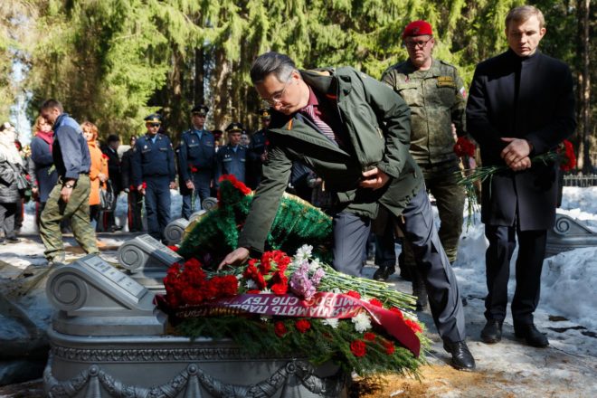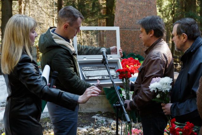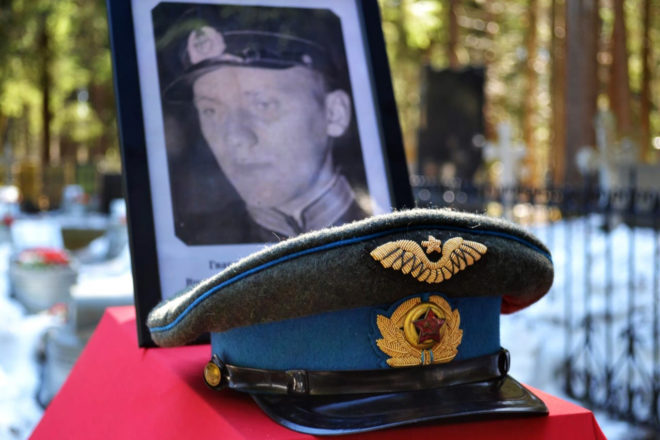 В ходе церемонии личные вещи погибшего летчика были переданы его родственникам. Собравшиеся почтили память героя войны минутой молчания и возложили цветы на его могилу.