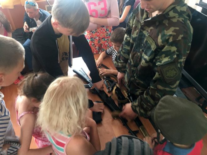 После бесед на патриотические темы, знакомства с оружием, музыкальных пауз гости и дети тепло пообщались за чаем со сладостями.
