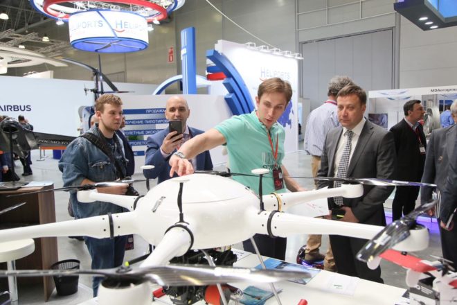 Квадрокоптер, способный установить мировой рекорд по продолжительности полета, был продемонстрирован на выставке вертолетной индустрии HeliRussia-2019 участниками Международного фестиваля детского и молодежного научно-технического творчества «От винта!», проводимого под эгидой Минпромторга России.