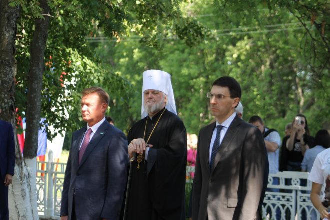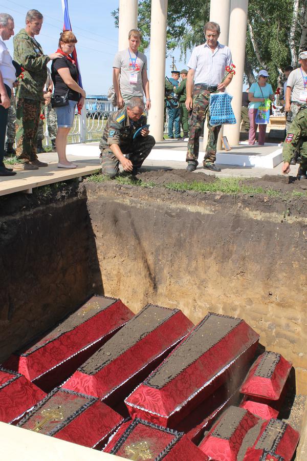 После митинга митрополит Курский и Рыльский Герман провел литию по павшим воинам. Затем состоялась процедура предания земле останков 69 героев, из которых 12 удалось опознать. Жители Курской области и гости возложили цветы к месту захоронения.