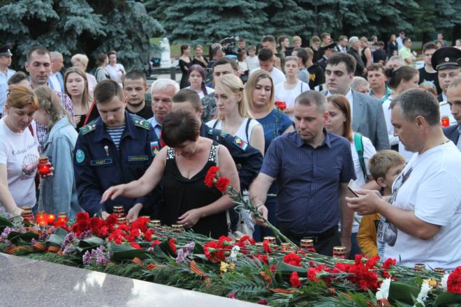 В День памяти и скорби в Курске прошли памятные мероприятия в честь одной из самых печальных дат в истории страны – 78-й годовщины со дня начала Великой Отечественной войны. В них принял участие врио губернатора Курской области Роман Старовойт, представители органов исполнительной и законодательной власти, силовых ведомств, духовенства, регионального отделения «ОФИЦЕРОВ РОССИИ», других общественных организаций, молодежных и ветеранских объединений.
