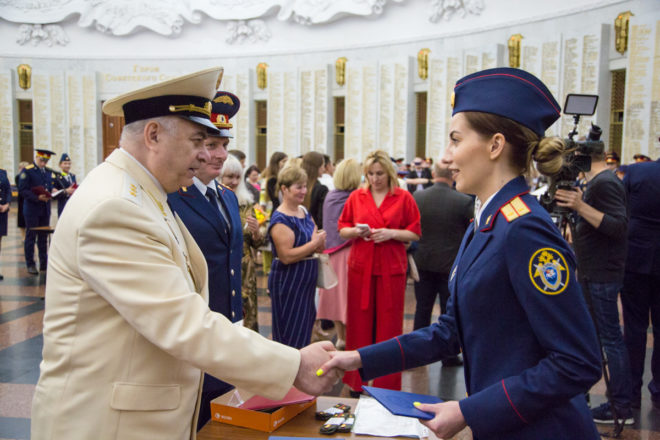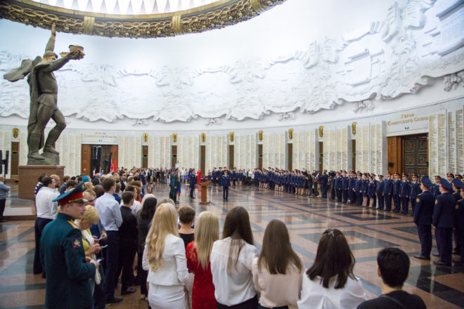 В Центральном музее Великой Отечественной войны на Поклонной горе состоялась торжественная церемония вручения дипломов о высшем образовании выпускникам Московской академии Следственного комитета РФ и принятие ими присяги.