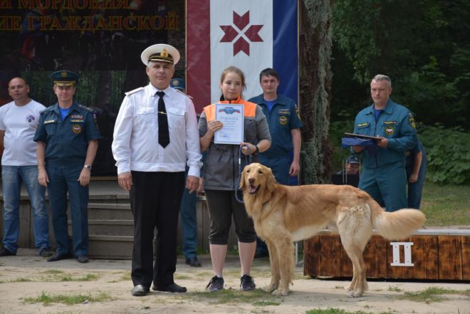 Почетной грамотой Мордовского регионального отделения «ОФИЦЕРОВ РОССИИ» за волю к победе удостоились волонтер СПСЧ ФГКУ «1 отряд ФПС по Удмуртской Республике» Гульнара Шайхутдинова и ее собака Байкал. Награду вручили руководитель исполкома регионального отделения Алексей Булычев и активист организации Сергей Малышев.