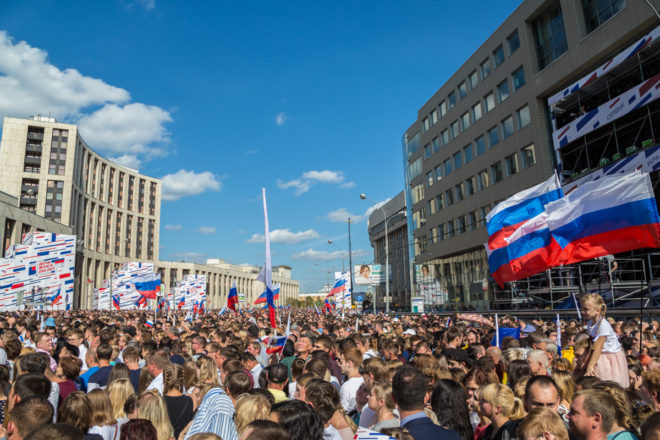 Более 100 тысяч человек посетили 24 августа митинг-концерт на проспекте Академика Сахарова в Москве в честь 350-летия Государственного флага России. Среди огромного количества людей, пришедших на праздник, было много активистов организации.