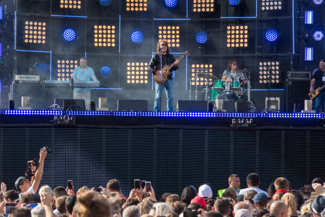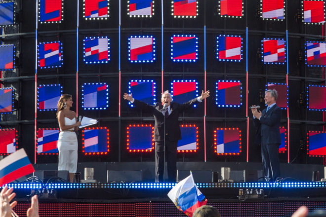 На сцене выступили известные российские артисты, оркестры МЧС и Росгвардии.