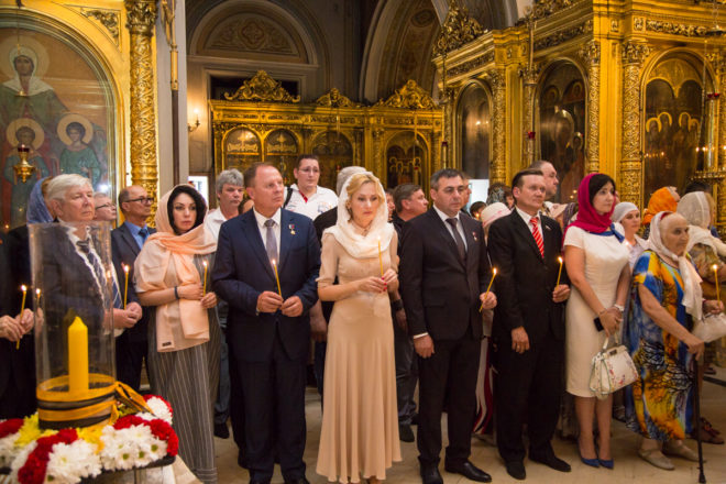 После зажжения Свечи памяти автоколонна, в которой находятся ветераны, Герои Российской Федерации, представители молодежи, из Елоховского собора направилась к духовным центрам столицы – Соборной мечети и Мемориальной синагоге, а также в парк Победы на Поклонной горе.